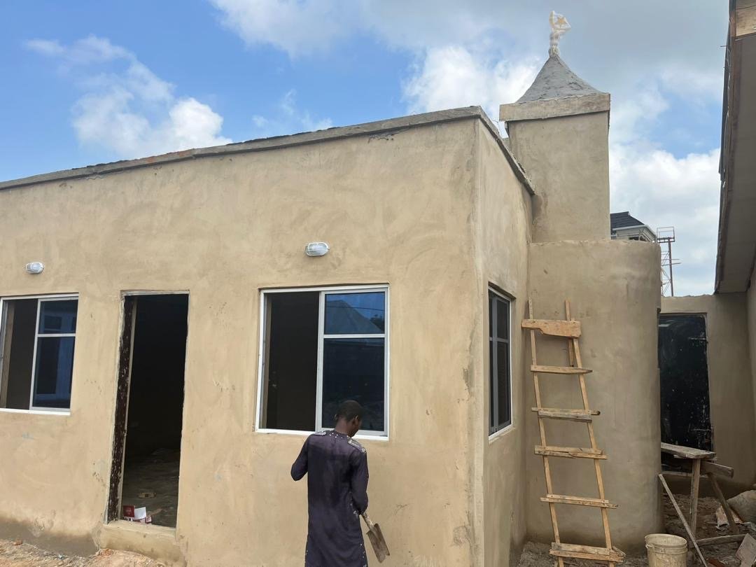 5)- بناء منارة بطول 5 – 3 م ومحراب ومنبر للمسجد.