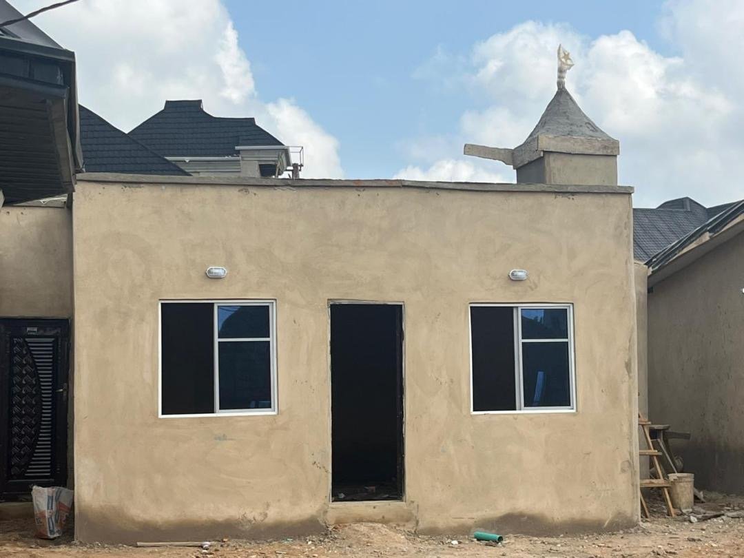 2) -مساحة المسجد (5/6) بحيث يتسع المسجد لأكثر من (50) مصليا، البواب(2) والنوافذ(3) للمسجد.