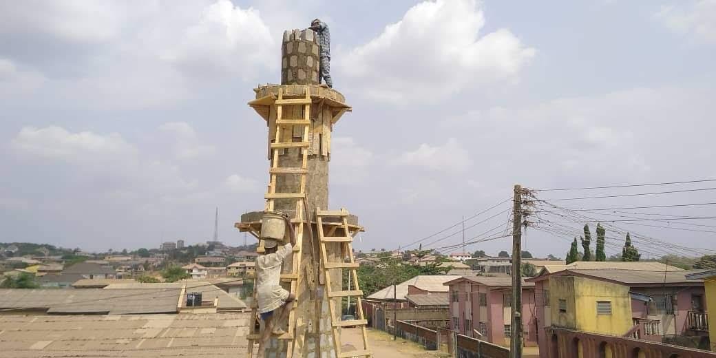 5)- بناء منارة بطول 5 – 7 م ومحراب ومنبر للمسجد.